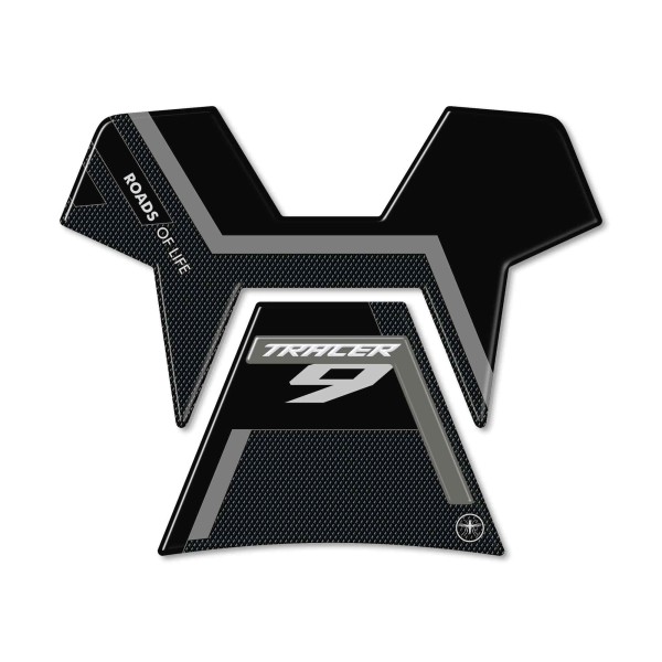 Klebeschutz aus Harz zum Schutz und zur Dekoration des Tanks Ihres Yamaha Tracer 9 Motorrads ab 2021. 3D-Gel-Harz-Kleber Exklusiv - Labelbike®. Kleber für den Tank HERGESTELLT IN ITALIEN aus Harz mit 3D-Effekt. 3D-Tankschutz mit Grafik in Grau, Blau oder Rot mit Carbon Look Basis und Schriftzug Tracer 9 Straßen des Lebens.