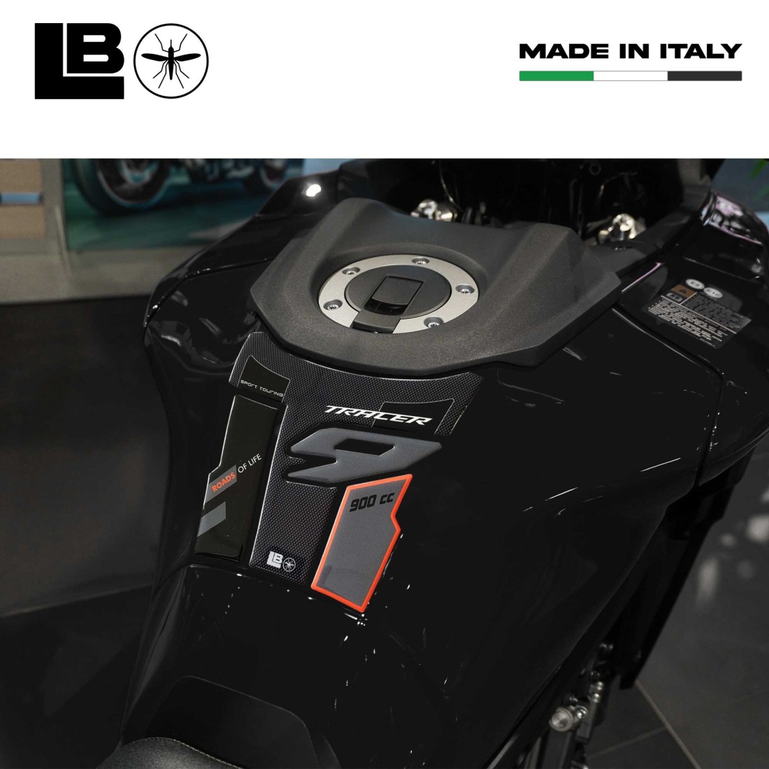 Klebeschutz aus Harz zum Schutz und zur Dekoration des Tanks Ihres Motorrads, kompatibel mit Yamaha Tracer 9 ab 2025. 3D-Gel-Harz-Kleber Exklusiv - Labelbike®. Kleber für den Tank HERGESTELLT IN ITALIEN hergestellt aus Harz mit 3D-Effekt. 3D-Tankschutz mit Grafik in Grau oder Rot mit Carbon Look Basis und Schriftzug Tracer 9 Sport Touring Roads of Life.