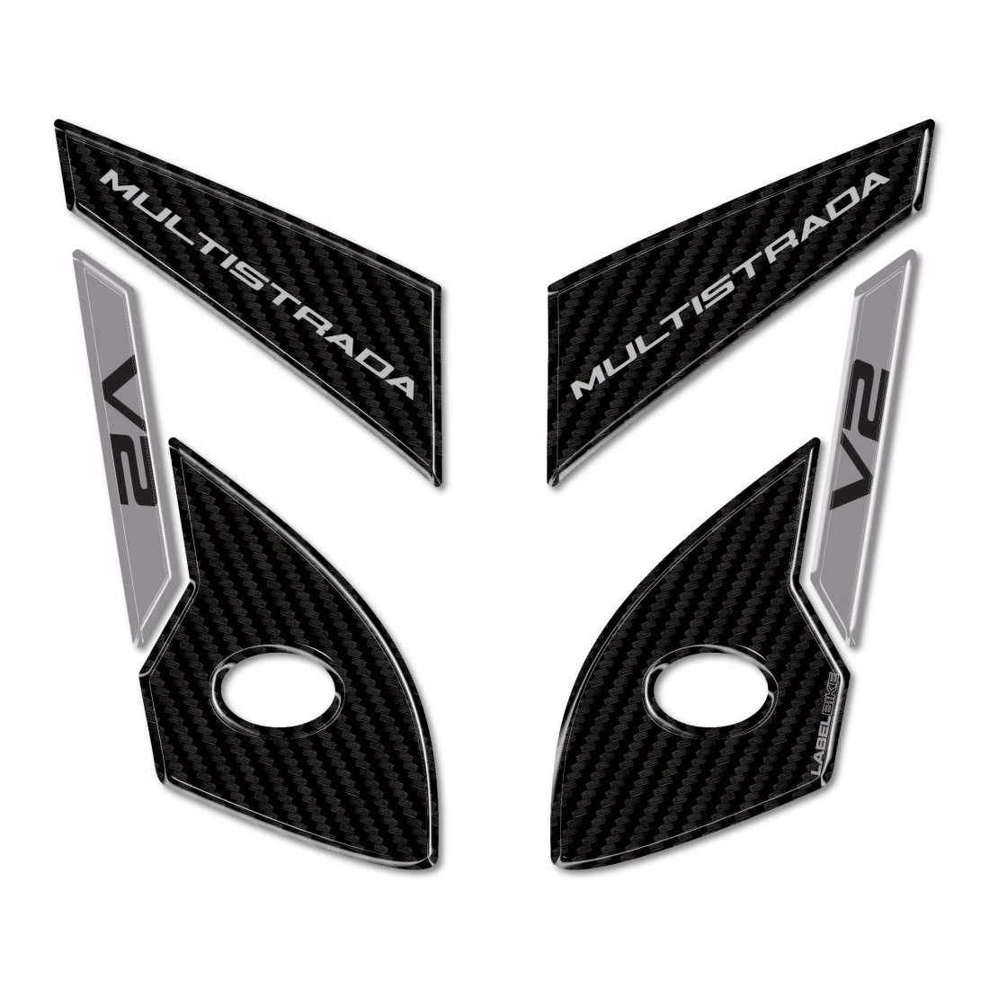 Klebeharz-Seitenschutz für Motorradkotflügel kompatibel mit Ducati Multistrada V2 und V2S 2025. Zwei 3D-Gel-Harz-Aufkleber Exklusiv - Labelbike. Seitenaufkleber für Motorradschutzbleche IN ITALIEN GEFERTIGT hergestellt aus Harz mit 3D-Effekt.