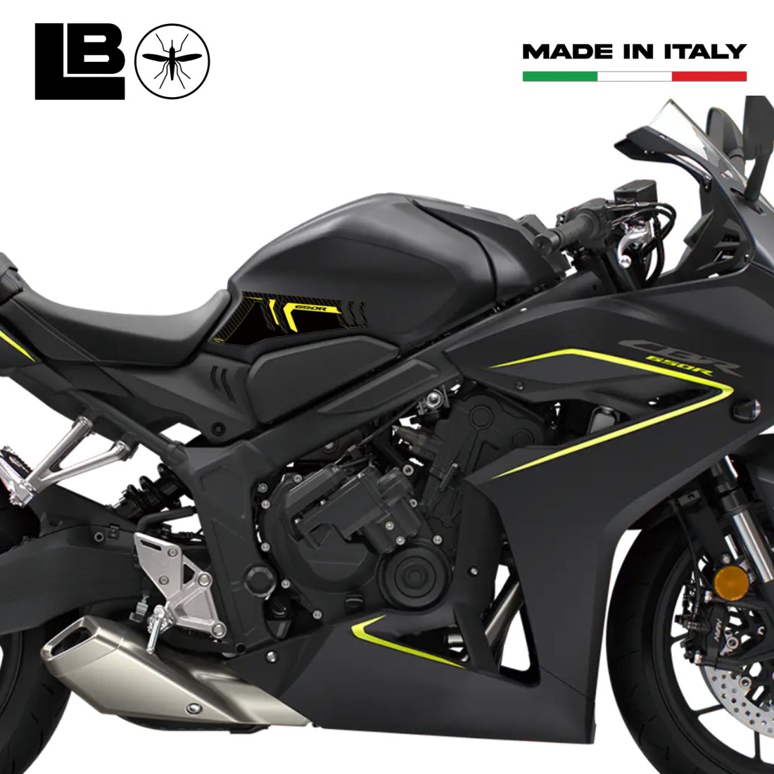 Klebeschutz aus Harz zum Schutz und zur Dekoration des Tanks Ihres Motorrads. Grafiken kompatibel mit Honda CBR650R 2026 Matte Gunpowder Black Metallic (Details in GELB).