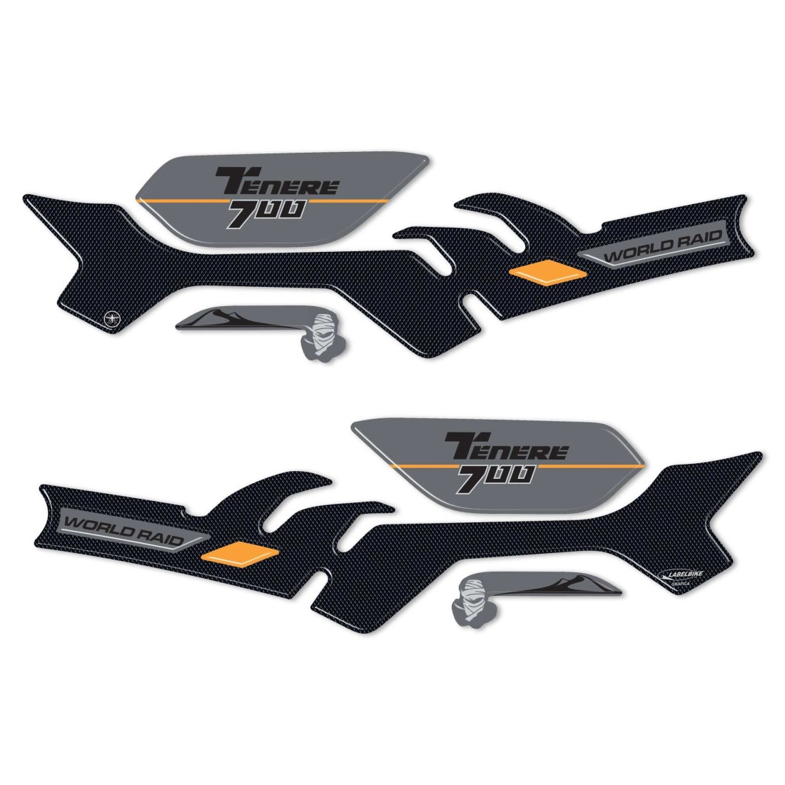 Harz-Klebeaufkleber für Yamaha Tenere 700 2023 Motorrad -Handprotektoren. Zwei Aufkleber für Motorrad-Handschützer rechts und links in 3D-Harz-Gel Exklusiv - Labelbike®. Kleber für Tenere 700 Handschützer HERGESTELLT IN ITALIEN aus Harz mit 3D-Effekt.