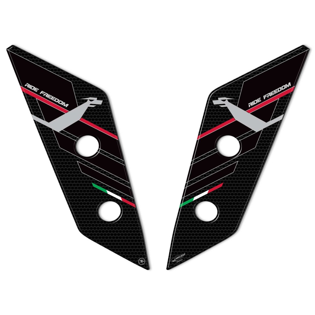 Seitliche Schutzbleche aus Kunstharz für Motorradflügel Morini X-CAPE 2022 - 2024. Zwei 3D-Gel-Harz-Aufkleber Exklusiv - Labelbike. Selbstklebende Seitenschützer für den vorderen Kotflügel IN ITALIEN GEFERTIGT aus Harz mit 3D-Effekt. Grafiken mit rutschfester Textur und Farben weiß, rot und Carbon Look. Sie schmücken und reparieren vor Stößen und Kratzern Die Schutzbleche für den Kotflügel Ihres X-CAPE 2022-2024 sind wasch-, witterungs- und UV-beständig.