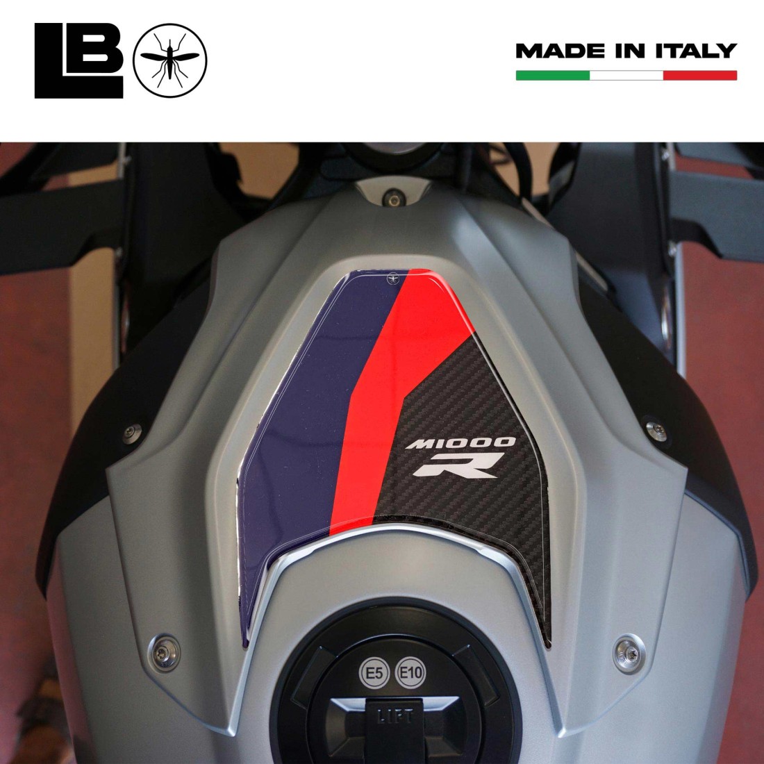 Προστασία 3D με κόλλα συμβατή με μοτοσικλέτα Bmw M1000R 2025. Συγκολλητική ρητίνη για την προστασία και τη διακόσμηση της επάνω περιοχής του ρεζερβουάρ της μοτοσικλέτας σας.