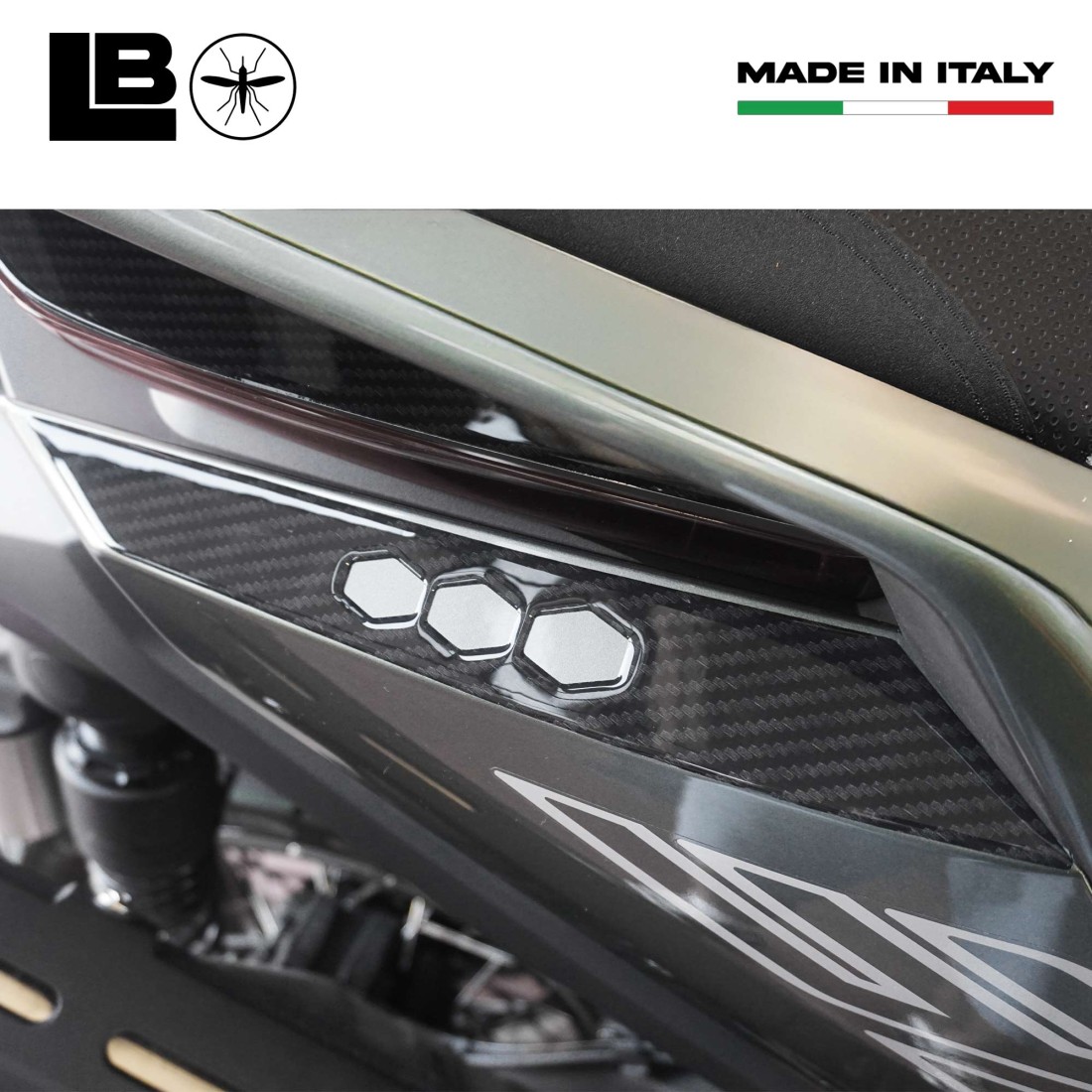 Protectores adhesivos 3D de resina para laterales traseros de scooter.