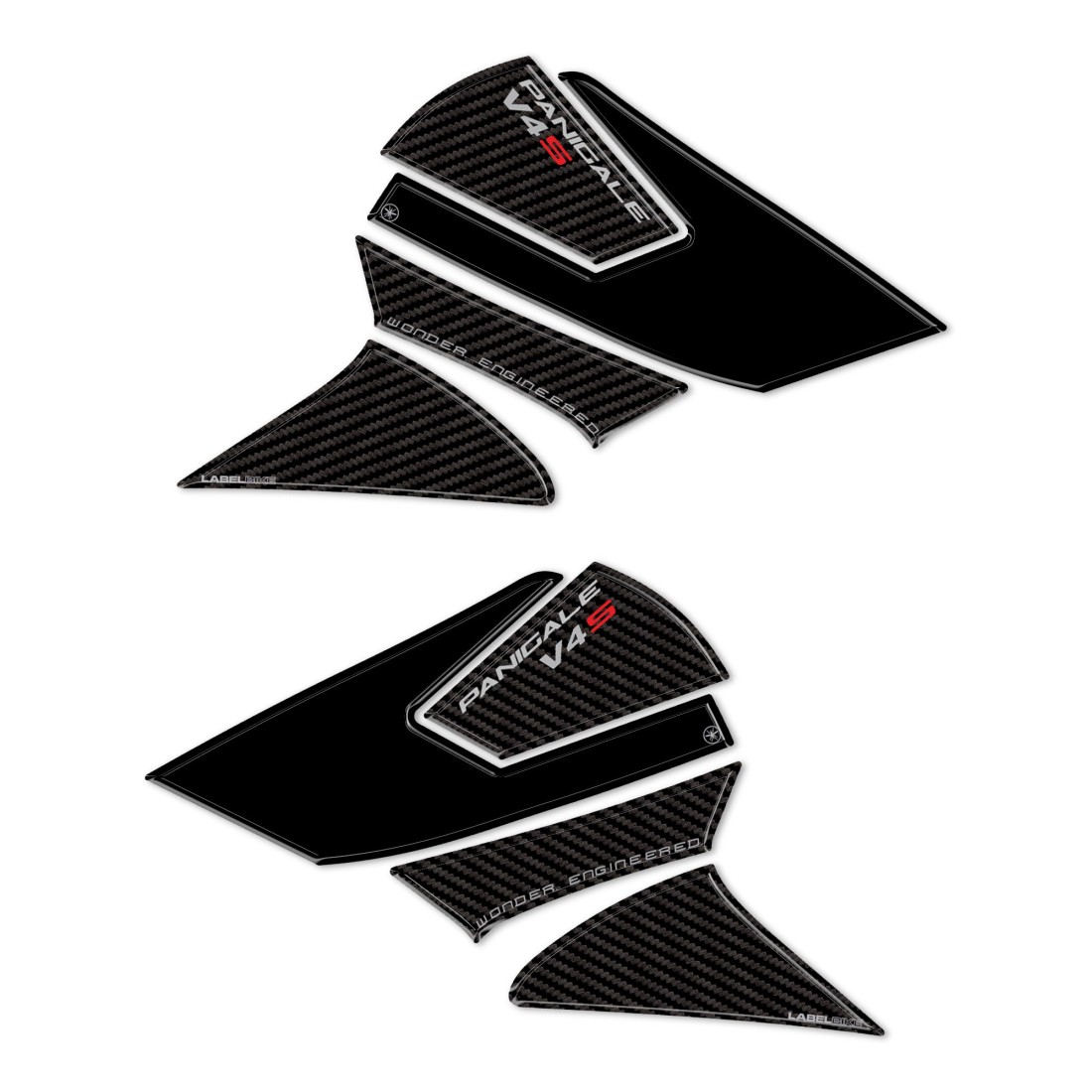 Protectores laterales de resina 3D para depósito de moto compatibles con Ducati Panigale V4 y V4S 2025. Par de pegatinas de gel de resina 3D Exclusivo - Labelbike®. Pegatinas protectoras depósito moto HECHO EN ITALIA realizados en resina con efecto 3D.