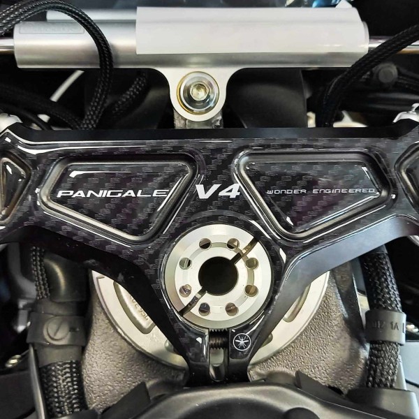 Protección adhesiva de resina para Placa de Horquilla de Dirección compatible con Ducati Panigale V4 y V4S 2025. Adhesivo de resina en gel 3D Exclusivo - Labelbike®. Protector adhesivo para Placa de Dirección de Moto. Adhesivo moto FABRICADO EN ITALIA Fabricado en resina con efecto 3D.