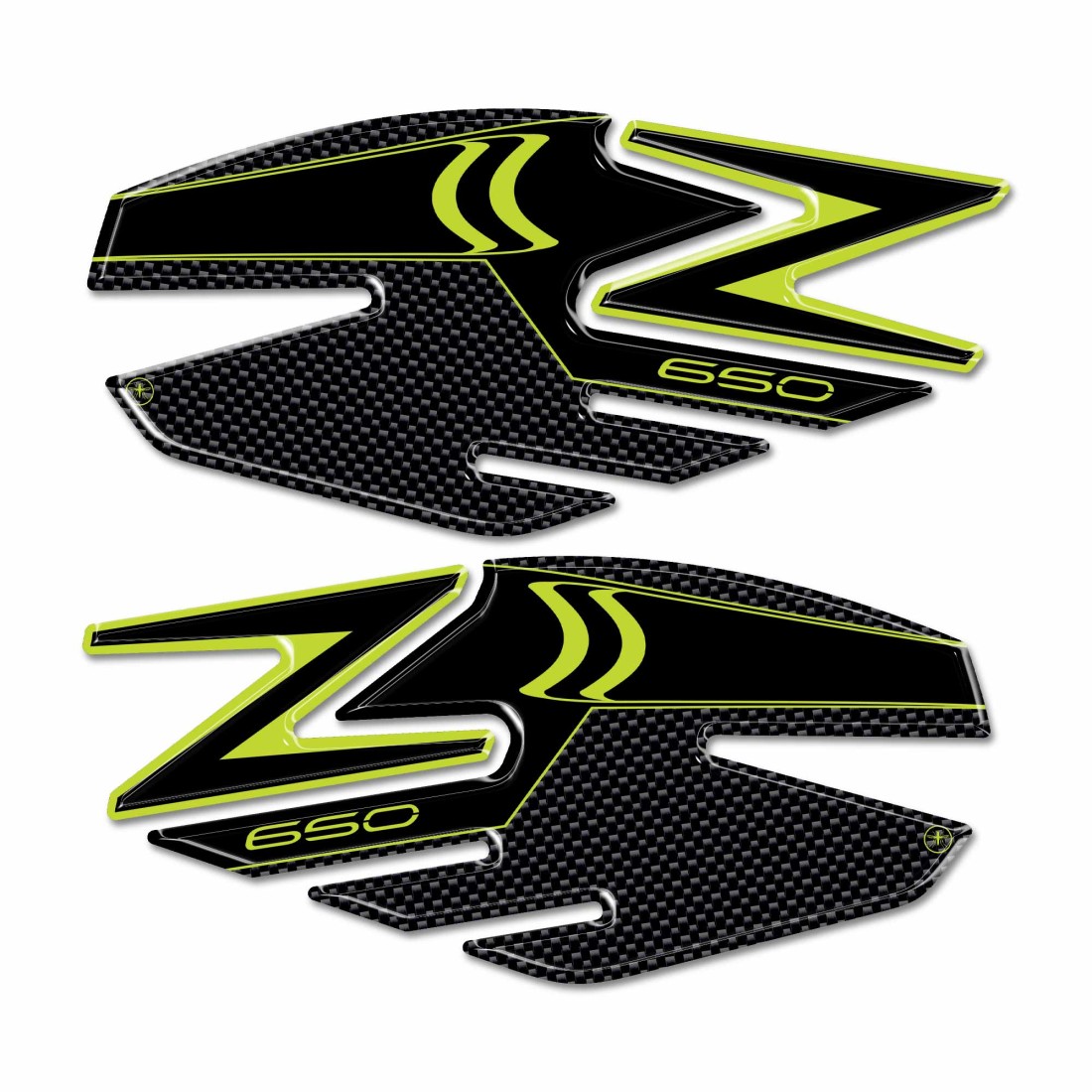 Protectores adhesivos de resina para la zona del depósito lateral de la moto compatibles con Kawasaki Z650 2017 - 2022. Dos adhesivos de resina de gel en 3D. Exclusivo - Labelbike. Adhesivos para el lateral del depósito HECHO EN ITALIA Realizados en resina con efecto 3D. Decoran y protegen el depósito de tu moto de golpes y arañazos, y son resistentes a los lavados, a la intemperie y a los rayos UV.