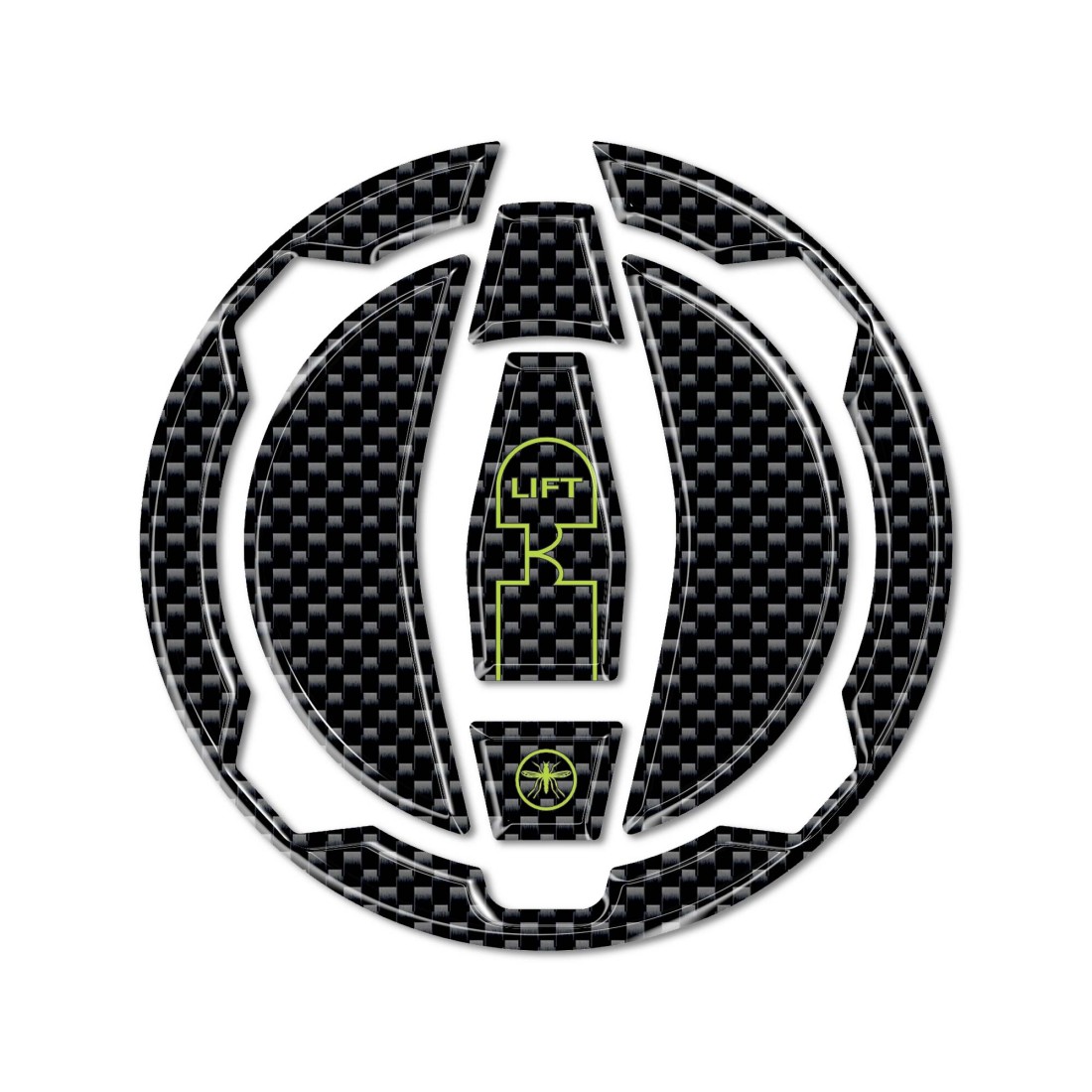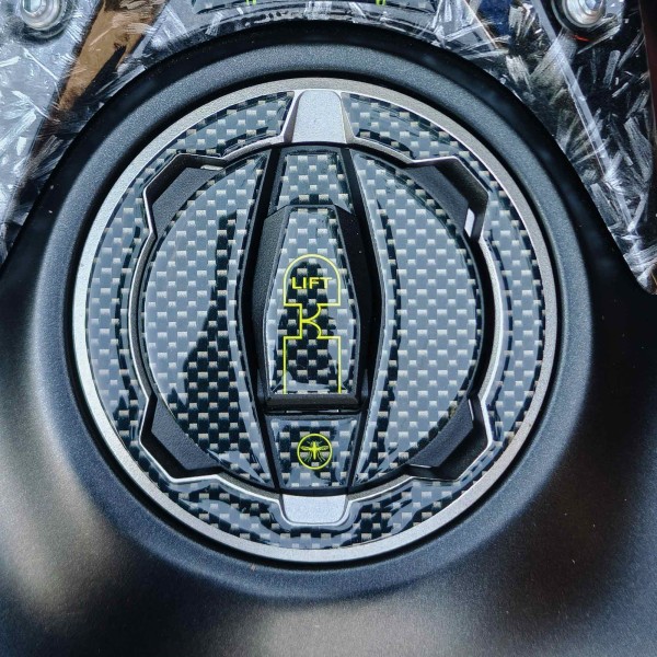 Protección 3D para tapón de combustible de moto compatible con Kawasaki Z650 de 2017 a 2022. Adhesivo de resina para proteger y decorar el tapón del depósito de tu moto. Protección adhesiva fabricada en resina con efecto carbono y detalles en Verde Lima.