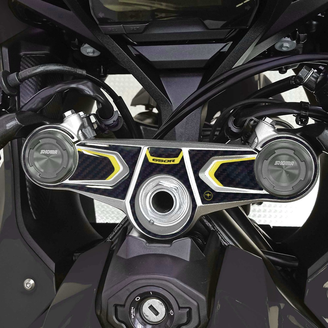 Protección adhesiva de resina para proteger y decorar la horquilla de dirección de tu moto. Gráficos compatibles con Honda CBR650R 2026 Negro Pólvora Mate Metalizado (detalles en AMARILLO).
