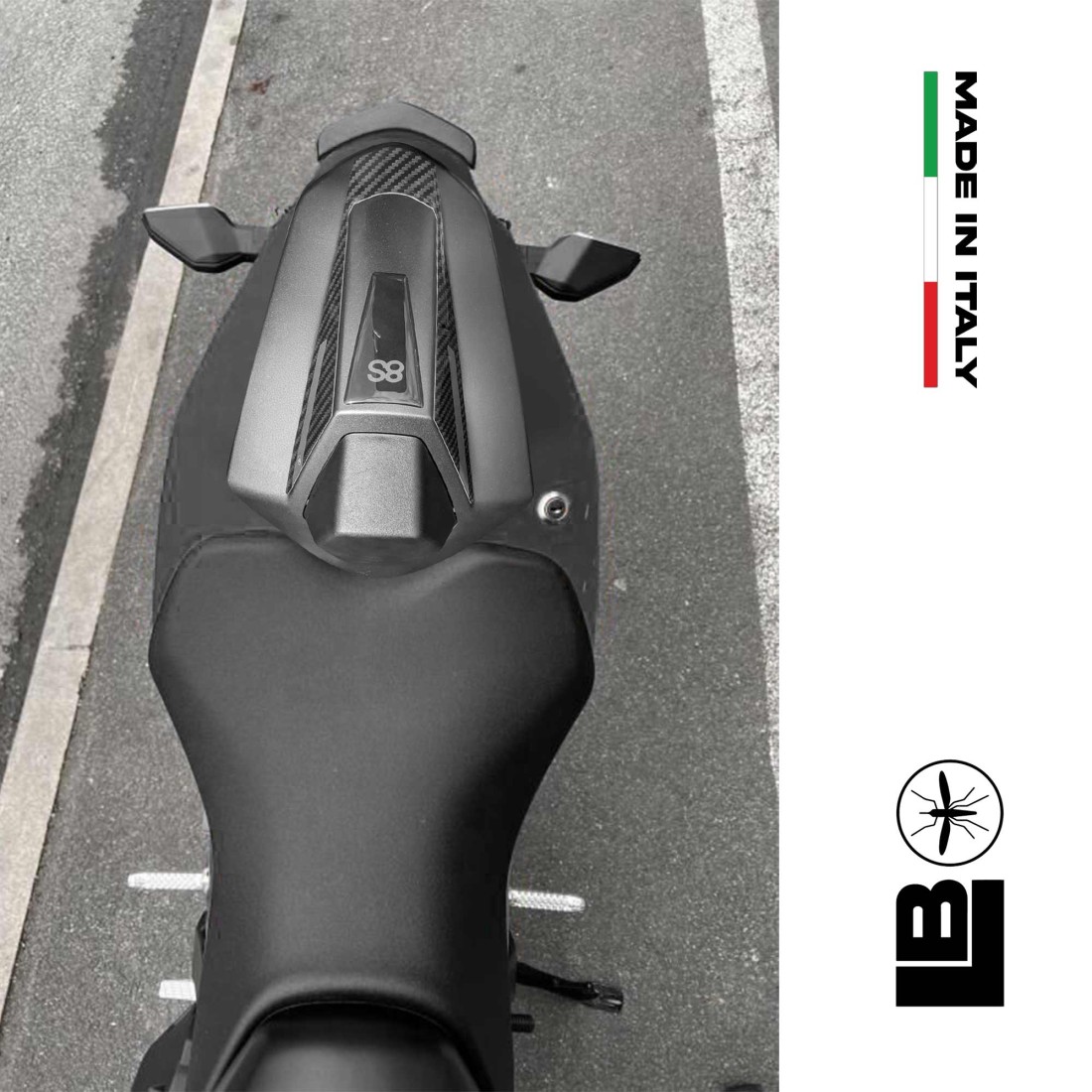 Protección adhesiva de resina para proteger y decorar el colín de tu moto. Pegatina 3D compatible con Suzuki GSX-8S a partir de 2024. Gel adhesivo de resina 3D Exclusivo - Labelbike®. Adhesivo FABRICADO EN ITALIA Realizado en resina con efecto 3D. Cola trasera de una pieza con gráficos en 2 colores: gris o azul claro.