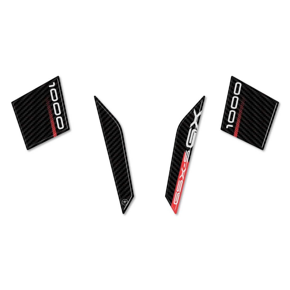 Adhesivo frontal de resina para moto con efecto 3D. Protección adhesiva de resina con gráficos en tres colores diferentes: Plata y Amarillo; Carbono y Rojo; Plata y Rojo para GSX-S1000GX.
