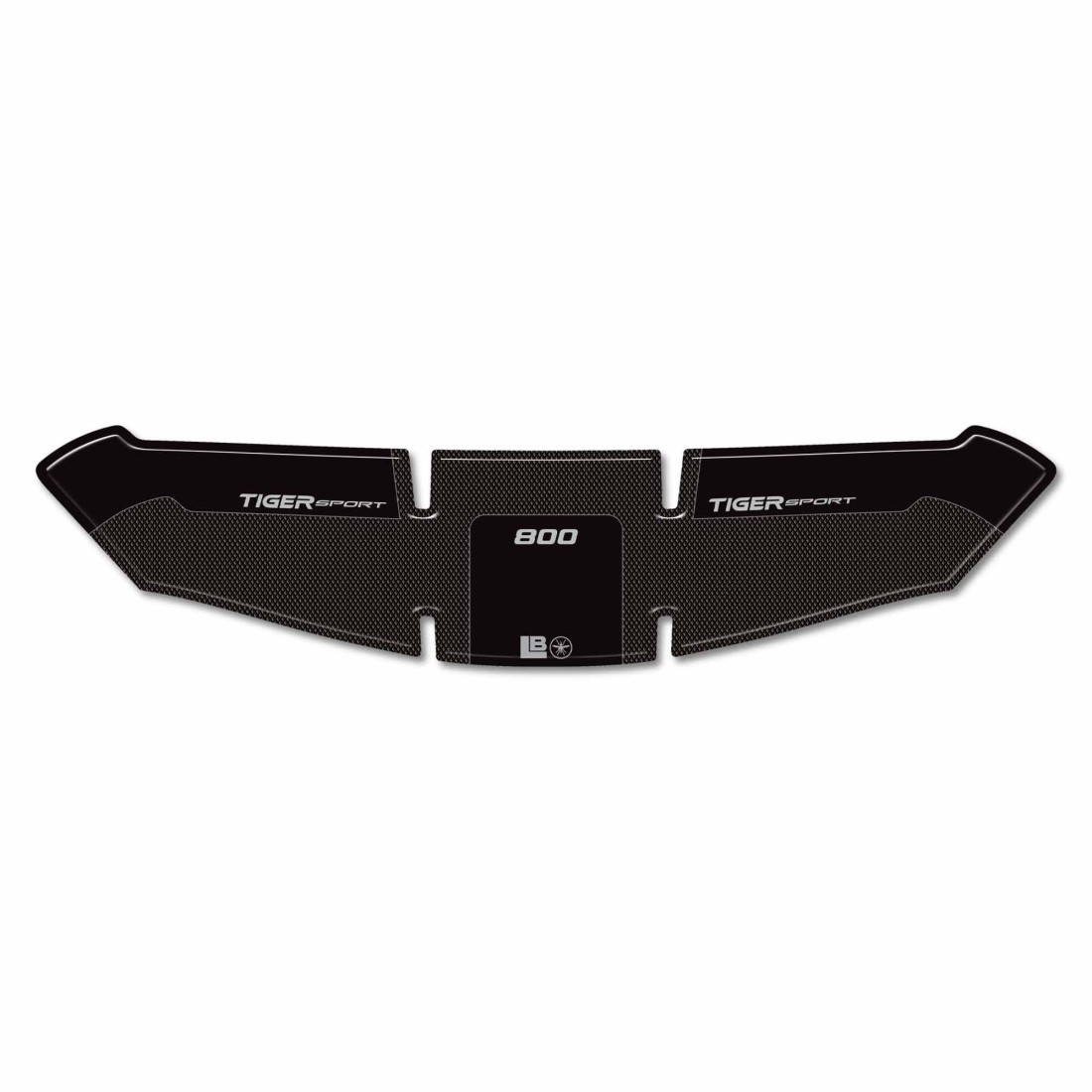 Protector de depósito adhesivo revestido de resina con efecto 3D. Protector adhesivo revestido de resina con gráficos en negro y efecto antideslizante y letras Tiger Sport 800.