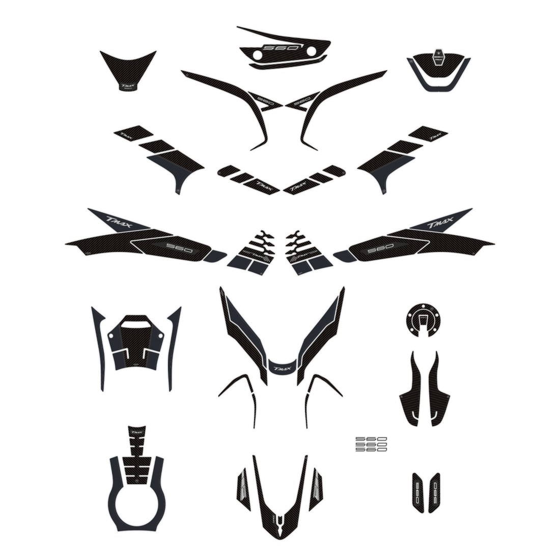 Kit de gráficos adhesivos para Yamaha Tmax 560 2022 compuesto por 16 pegatinas de resina: