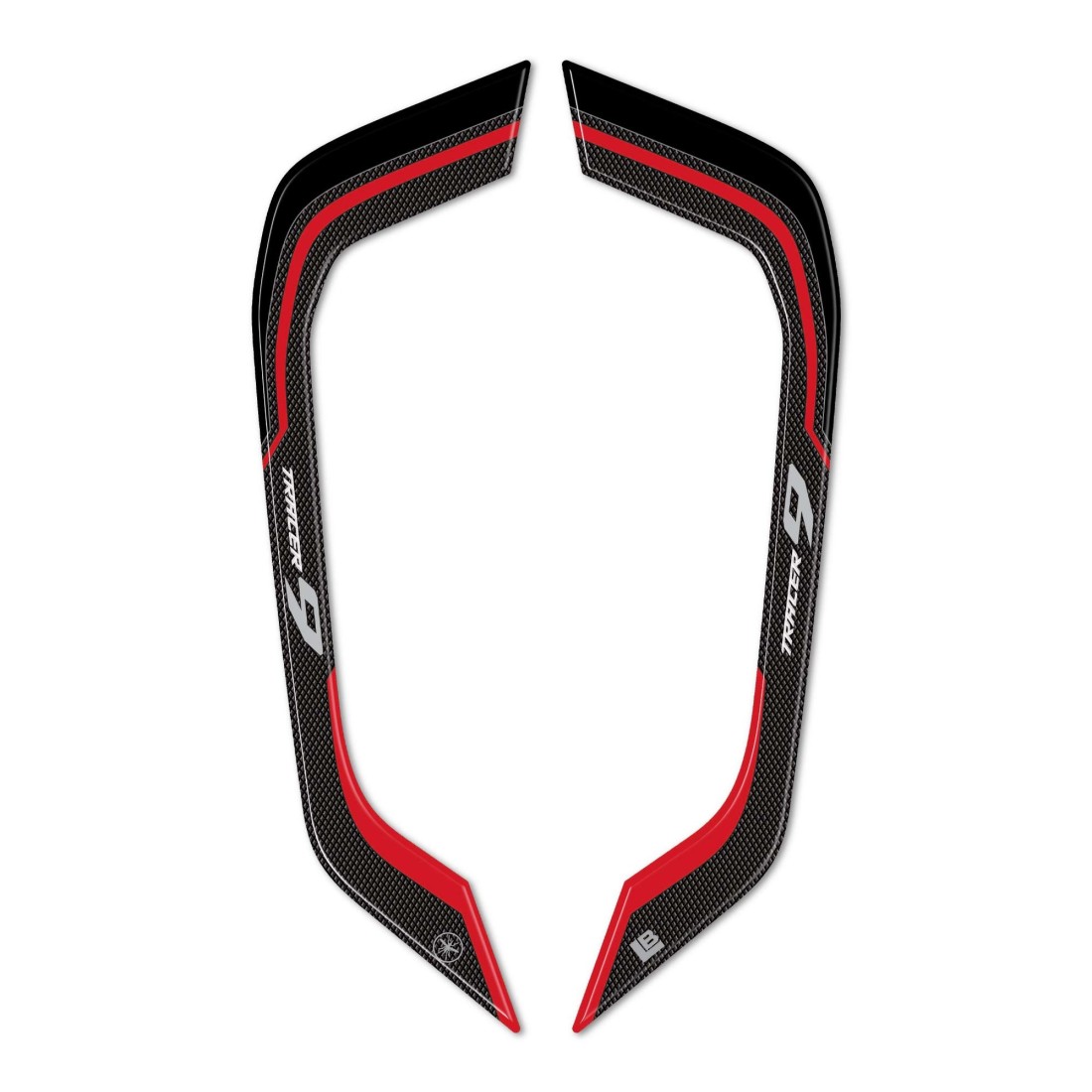 Protection adhésive en résine pour protéger et décorer les poignées de votre moto, compatible avec la Yamaha Tracer 9 à partir de 2025. Gel 3D adhésif en résine Exclusif - Labelbike®. Autocollants pour les poignées passager droite et gauche des motos. FABRIQUÉ EN ITALIE en résine avec effet 3D.
