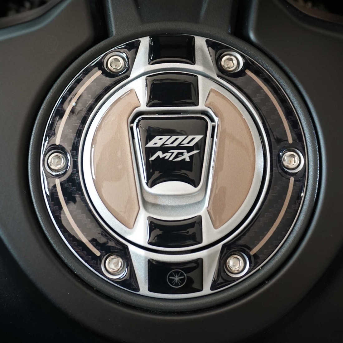 Protection 3D pour bouchon de réservoir de moto compatible avec le CF MOTO 800 MT-X à partir de 2025. Autocollant en résine pour protéger et décorer le bouchon de réservoir de votre moto.