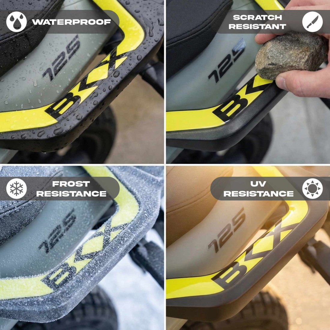 Nos autocollants Made in Italy adhèrent bien à la surface, protègent de l'usure et rehaussent l'esthétique de votre moto. Ils protègent des chocs et des rayures et sont résistants au lavage, aux intempéries et aux rayons UV.