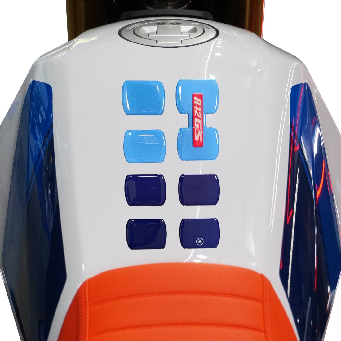 Autocollants en 3 couleurs Noir, Rouge ou Cyan compatibles avec les trois couleurs de moto de 2025, choisissez la vôtre ! Protecteurs de bouchon de réservoir adhésifs en résine réservoir moto, MADE IN ITALY, exclusivité Labelbike®.