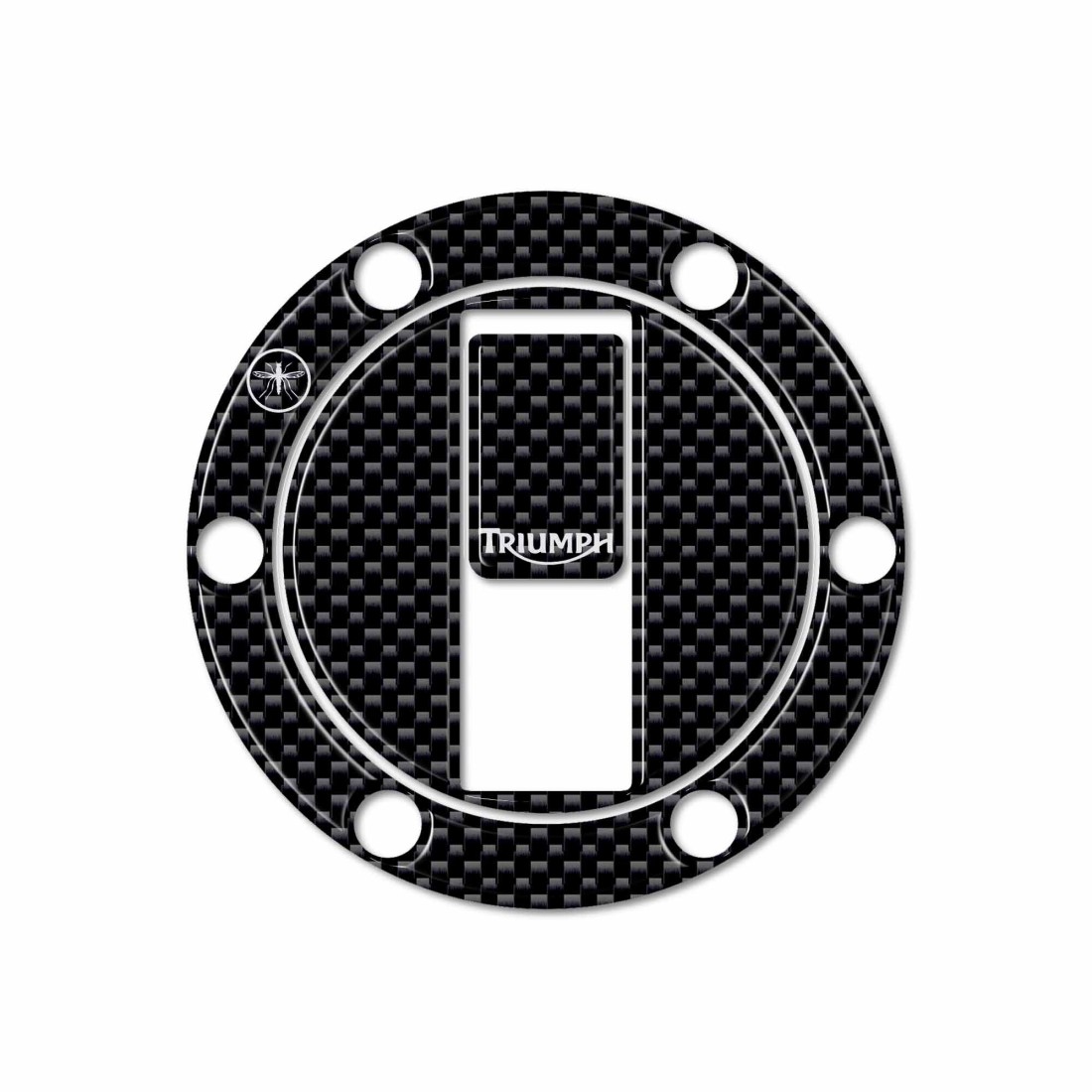 Protecteur de bouchon de réservoir 3D compatible avec Triumph jusqu'en 2015. Sticker en résine pour protéger et décorer le bouchon du réservoir de votre moto. Protection adhésive en résine avec effet carbone et inscription "TRIUMPH".