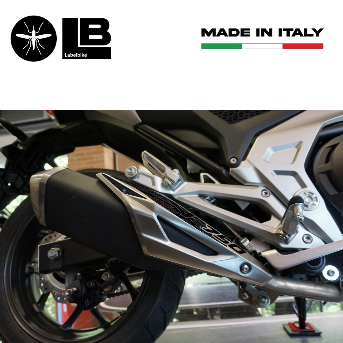 Cette protection adhésive en résine gel 3D, Exclusive Labelbike, se caractérise par un graphisme à base noire avec finition Carbon Look (effet carbone) et inscription Adventure 750, pour un style moderne et dynamique. L’autocollant d’échappement MADE IN ITALY est facile à appliquer, protège des rayures et résiste aux lavages, aux intempéries et aux rayons U.V., en conservant couleurs et brillance dans le temps.