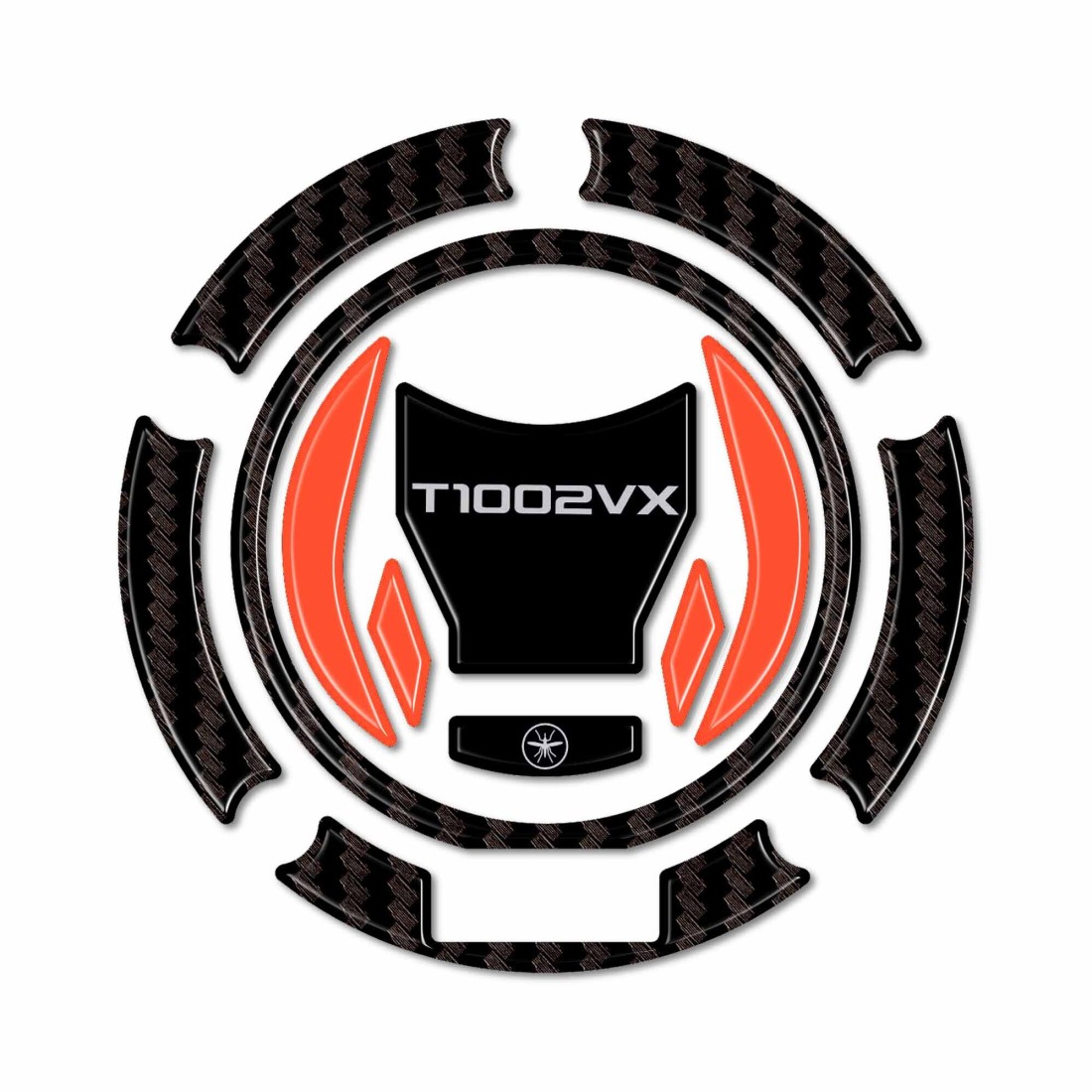 Autocollant de protection de bouchon de réservoir en résine avec effet 3D. Pour nos protections adhésives, nous avons créé un graphisme en résine d'une seule couleur compatible avec les deux couleurs de la moto. Protections adhésives en résine pour réservoir de moto avec graphisme en noir, effet carbone et rouge. Autocollant 3D pour bouchon de réservoir de moto compatible avec Morbidelli T1002VX 2025.