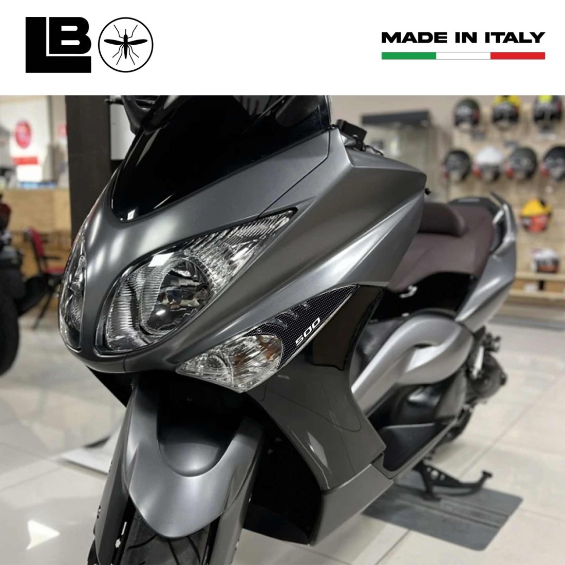 Paire d'autocollants pour Arrow Zone Yamaha Tmax 2008-2011. Fabriqués en résine gel 3D avec des graphismes en carbone et un lettrage blanc.