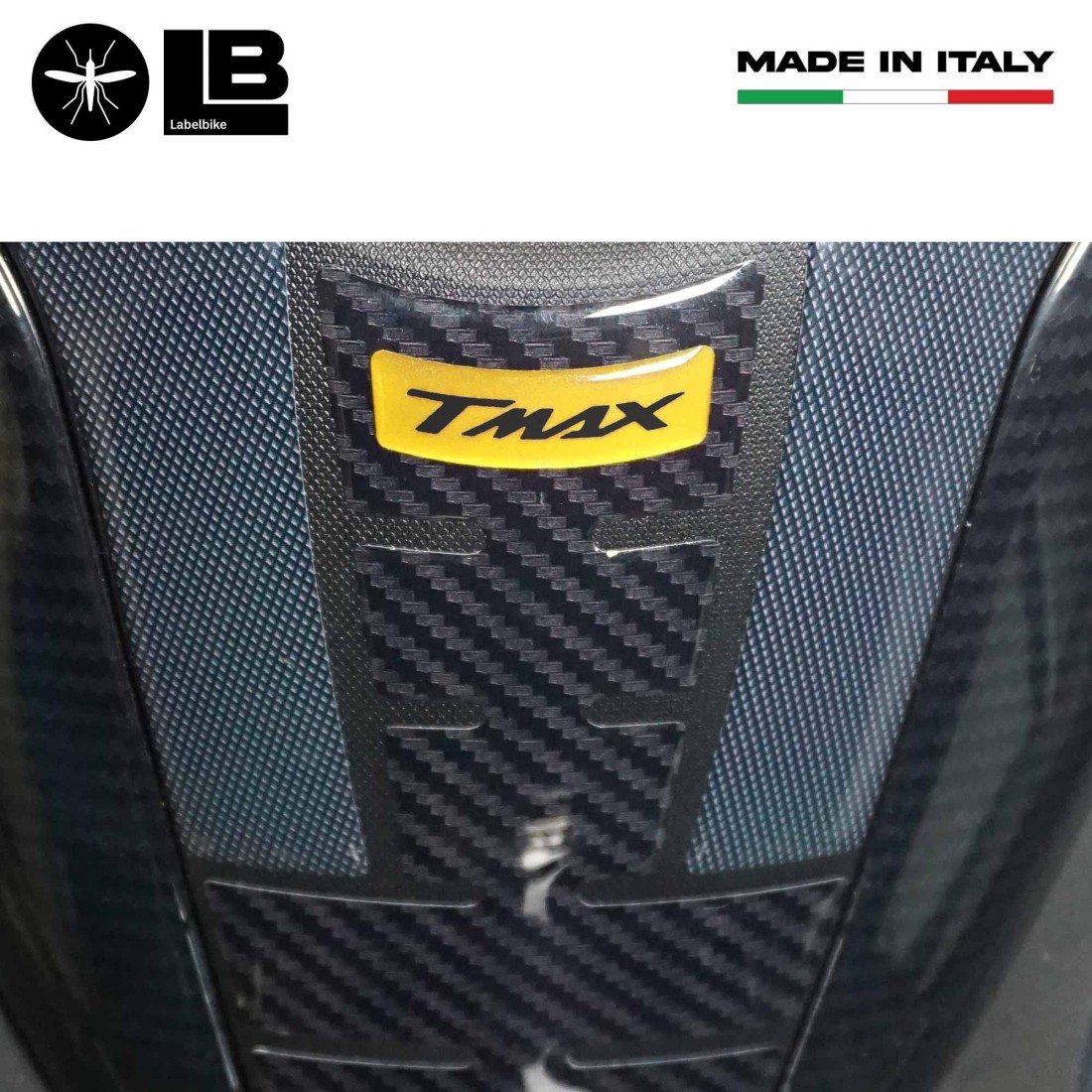 Protection adhésive pour la zone centrale du tunnel Tmax 2022 - 2025 et version Tech Max. Graphiques avec base en Simil Antislip et effet carbone avec écriture Tmax en 6 couleurs différentes. Autocollants en résine à effet 3D, Exclusivité Labelbike MADE IN ITALY.