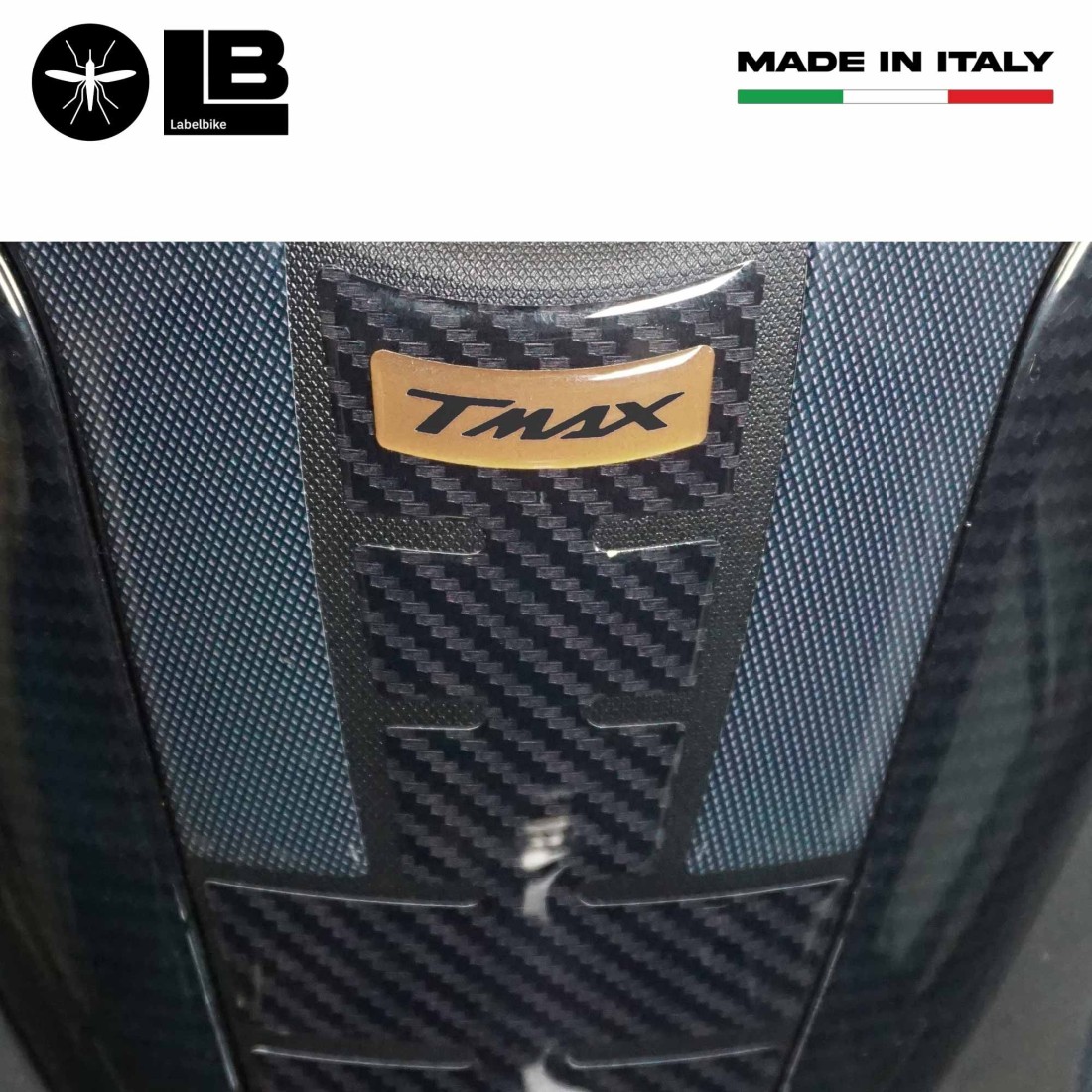 Protection adhésive pour la zone centrale du tunnel Tmax 2022 - 2025 et version Tech Max. Graphiques avec base en Simil Antislip et effet carbone avec écriture Tmax en 6 couleurs différentes. Autocollants en résine à effet 3D, Exclusivité Labelbike MADE IN ITALY.
