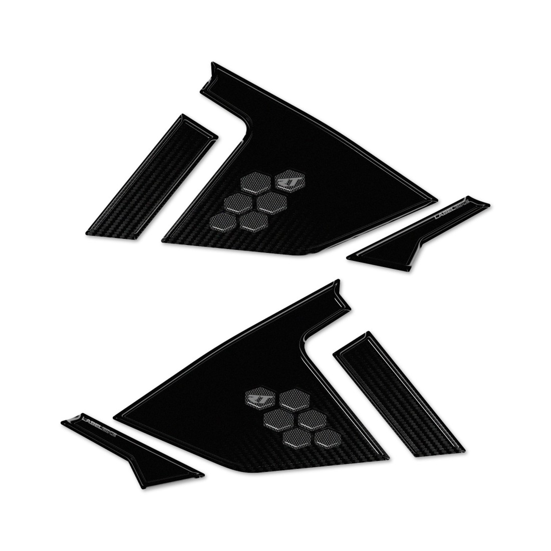 Adhesive resin protectors for motorbike side tank area compatible with Bmw R 1300 RT. Two 3D resin gel stickers Exclusive - Labelbike®. Tank side stickers MADE IN ITALY made in resin with 3D effect. Motorbike stickers in one colour compatible with Bmw R 1300 RT from 2025. Our resin-coated protectors decorate and protect your motorbike tank from bumps and scratches, and are resistant to washing, weathering and UV rays.