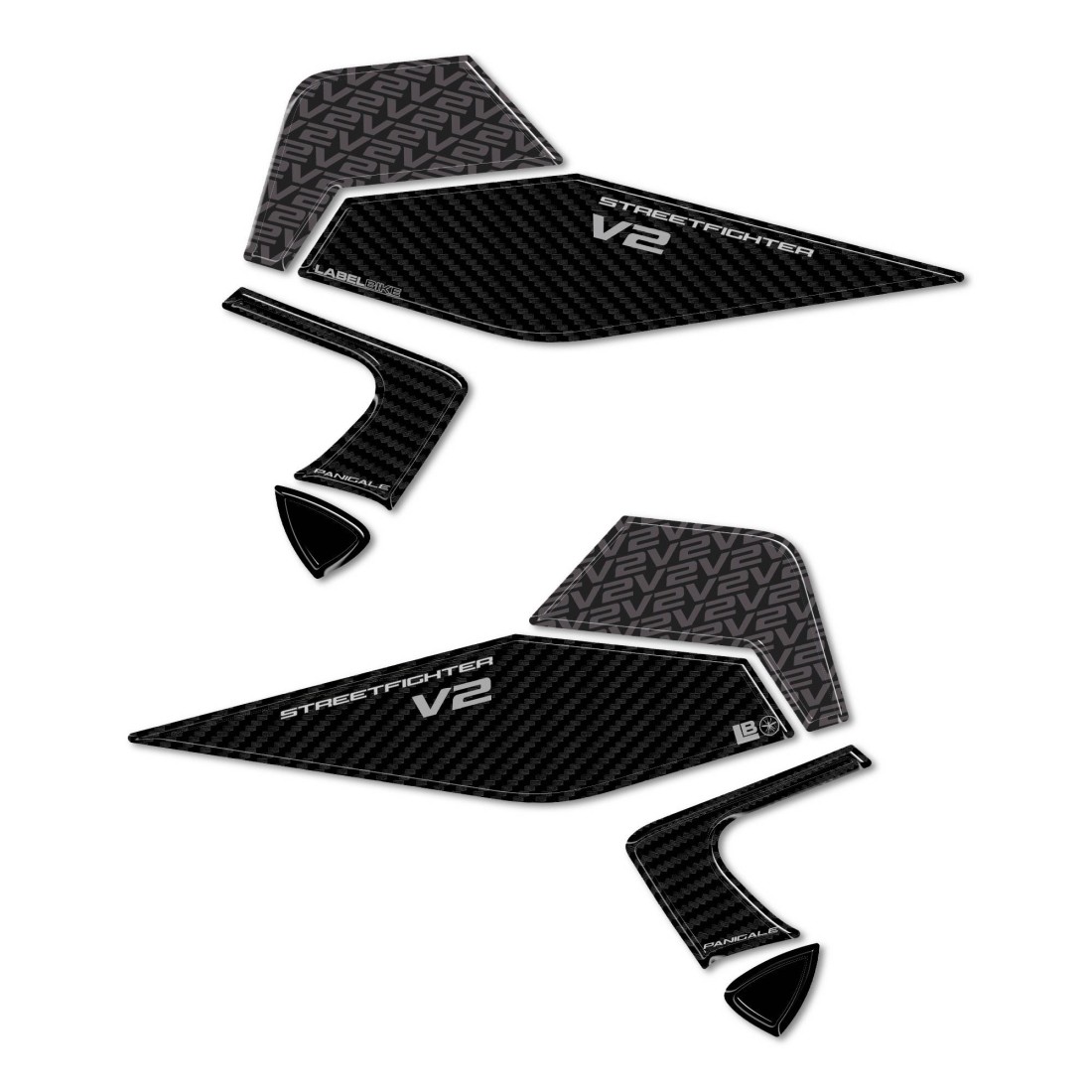 Resin resin stickers, motorbike side tank protectors compatible with Ducati Streetfighter V2 and V2S 2025. Pair of 3D gel resin stickers Exclusive - Labelbike®. Motorbike tank protector stickers MADE IN ITALY made of resin with 3D effect.
