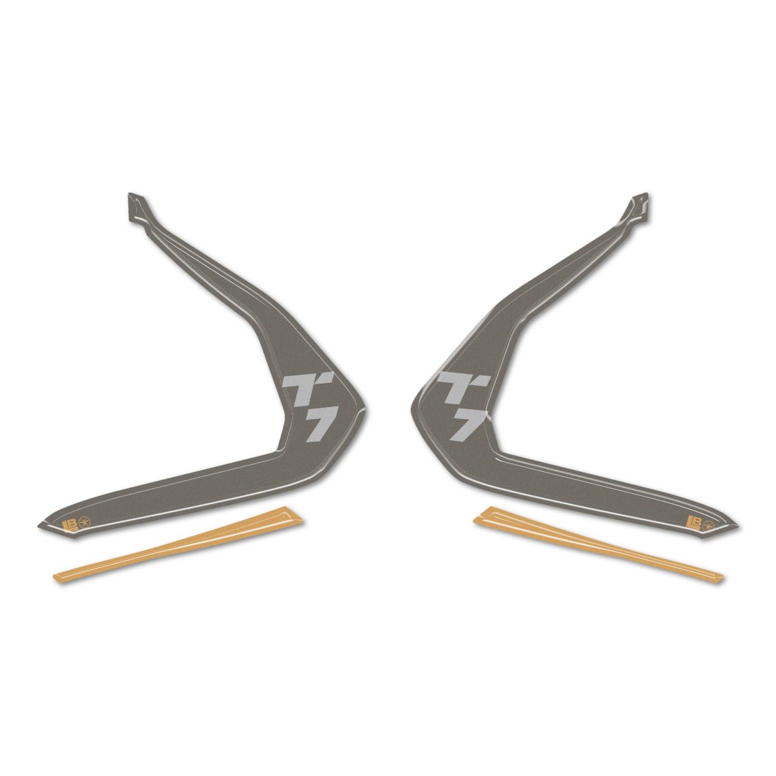 Our stickers decorate and protect from bumps and scratches the front hand guards of your motorbike, they are resistant to washing, weather and UV rays. Set of 2 stickers for the right and left side protection for Motorbike handguards with Blue or Gold finish. Made from 3D resin for motorbike handguards.