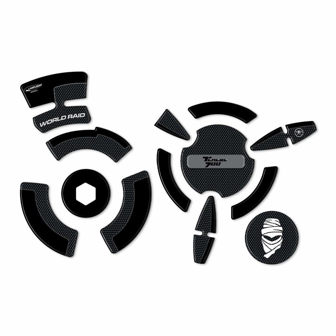 Set of stickers (with black base and Simil Antislip with Grey or Light Blue finish for 2022 colours. made of 3D resin compatible with motorbike crankcases Yamaha Tenere 2022.
