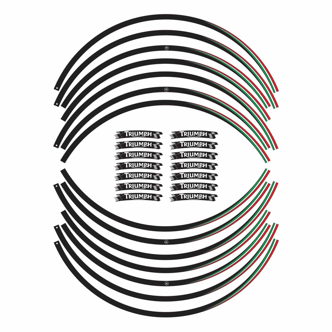 Set of adhesive strips for 17" wheel rims compatible with motorbikes Triumph Speed Triple | Street Triple | Trident and all Triumph motorcycles with 17" wheels. Pre-bent motorbike wheel rim edge stickers ideal to decorate and make your Triumph bike unique!