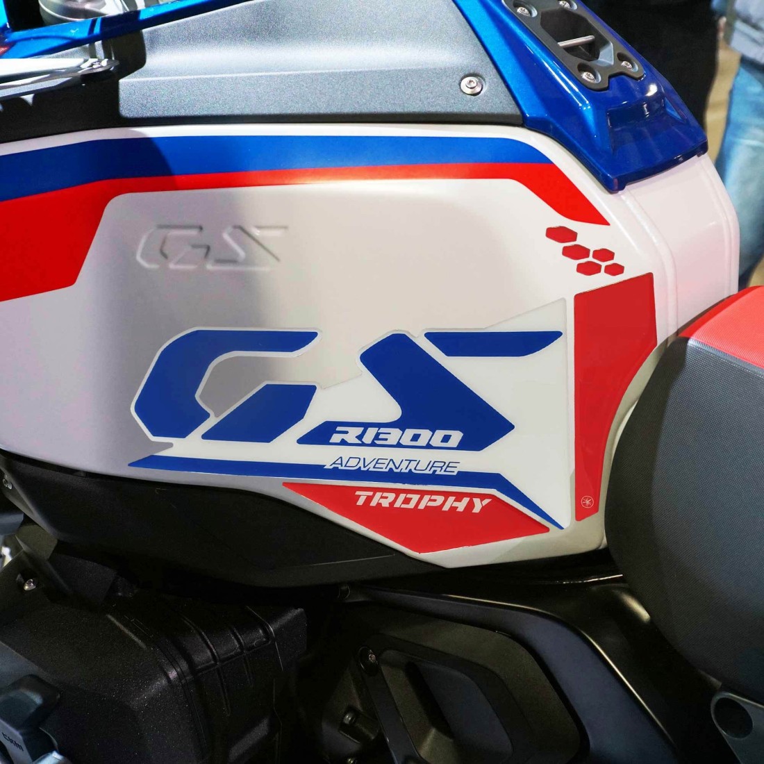 Resin stickers ideal for protection and decoration; compatible with colours from 2024. Adhesive resin-coated motorbike graphics 3D effect, glossy surface, for tank side area motorbike BMW R 1300 GS Adventure from 2024. Our stickers add personality and enhance the look of your GS 1300 Adv. Customise your Maxi Enduro andmake it unique with our resin-coated motorbike stickers, which are resistant to bumps and scratches, weathering, washing and UV rays.