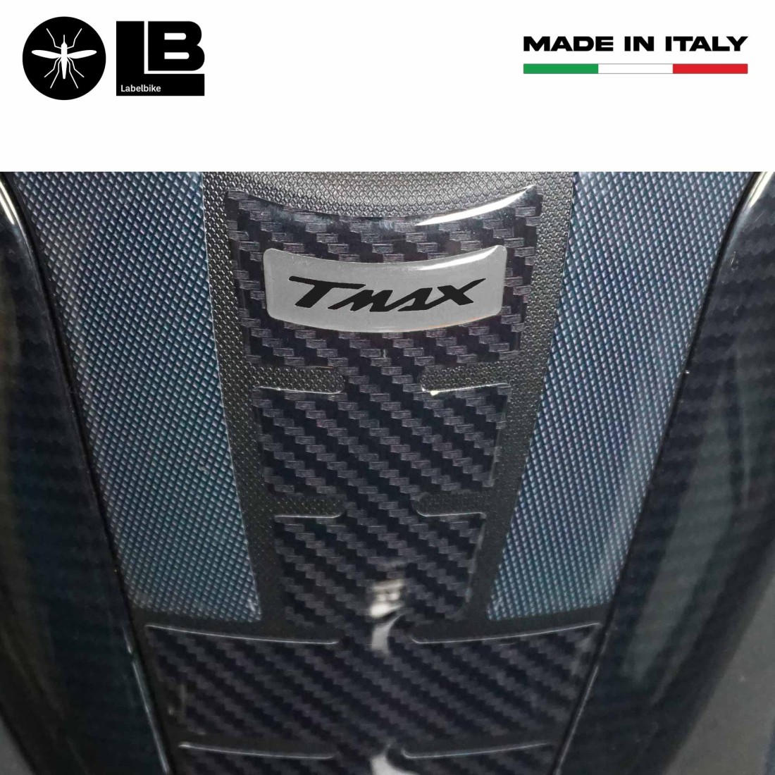 Adhesive protection for central tunnel area Tmax 2022 - 2025 and Tech Max version. Graphics with base in Simil Antislip and carbon effect with Tmax writing in 6 different colours. Resin 3D effect stickers, Exclusive Labelbike MADE IN ITALY.