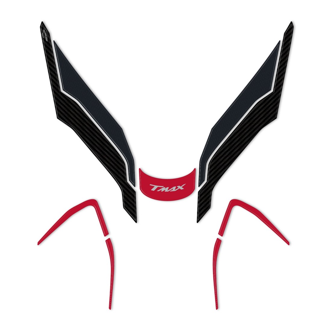 Adhesive protection for scooter Tmax 2022-23 frontal protection and Tech Max version. Graphics with carbon effect and 5 colour variations with Tmax writing. Resin 3D effect stickers, Exclusive Labelbike MADE IN ITALY.