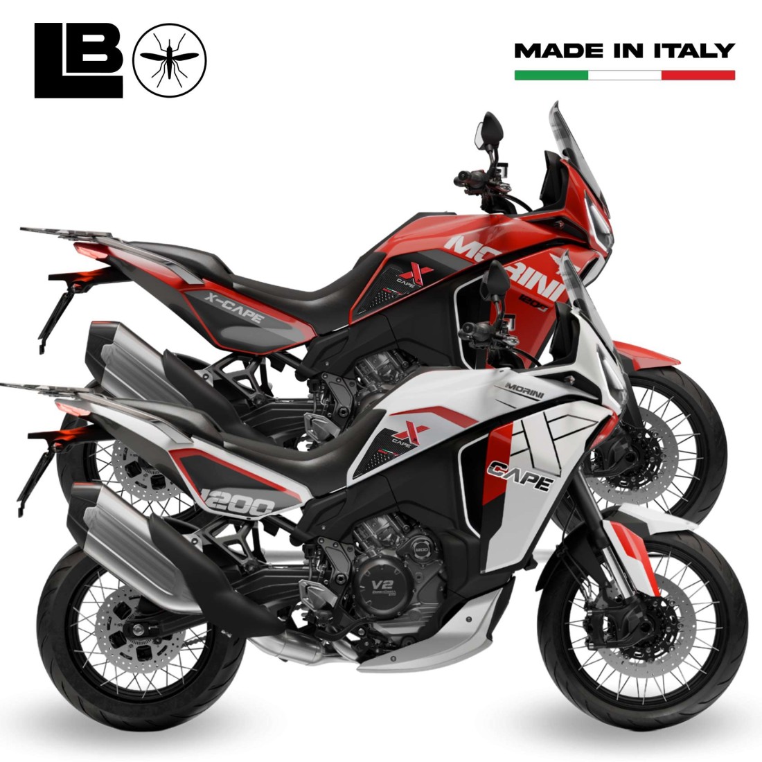 3D adhesive protectors compatible with Moto Morini Xcape 1200 (2026). Resin stickers left and right side to protect and decorate the tank of your bike. Resin adhesive motorbike graphics 3D effectglossy surface, motorbike protection.