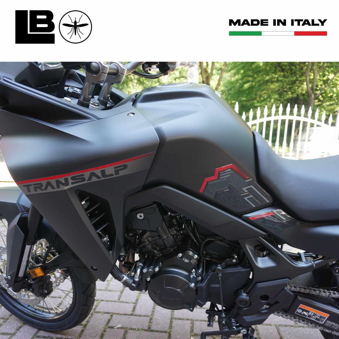 3D gel resin stickers compatible with all motorbike colours (Tricolour Ross White; Matte Ballistic Black Metallic; Matte Iridium Grey Metallic) XL750 Transalp from 2023.