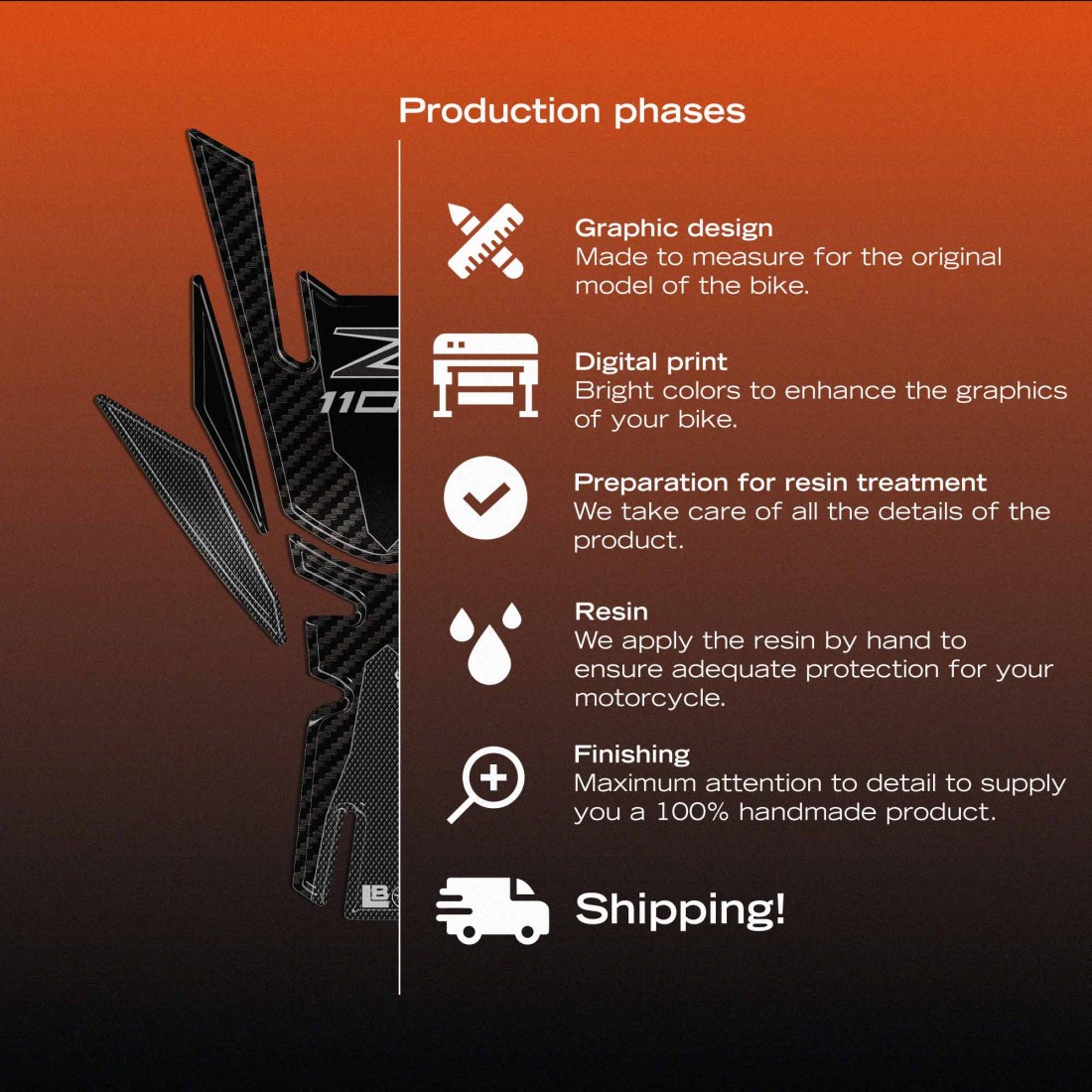 I nostri adesivi decorano e riparano da Urti e Graffi il serbatoio della tua moto, resistono a lavaggi, intemperie ed ai Raggi U.V. Paraserbatoio moto, protezione anti graffi per Serbatoio Moto. Adesivi moto realizzati in resina 3D compatibili con Kawasaki Z1100 2026.
