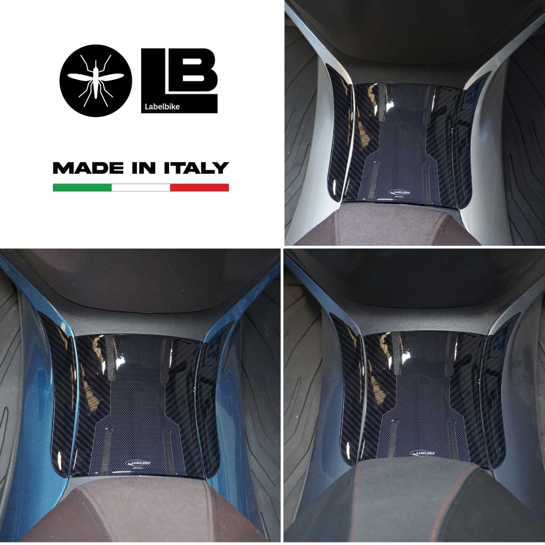 Protezione Adesiva per zona centrale sportello serbatoio. Grafica con base in Simil Antiscivolo e Carbonio con finiture Grigie. Adesivi resinati effetto 3D, Esclusivi Labelbike® MADE IN ITALY.