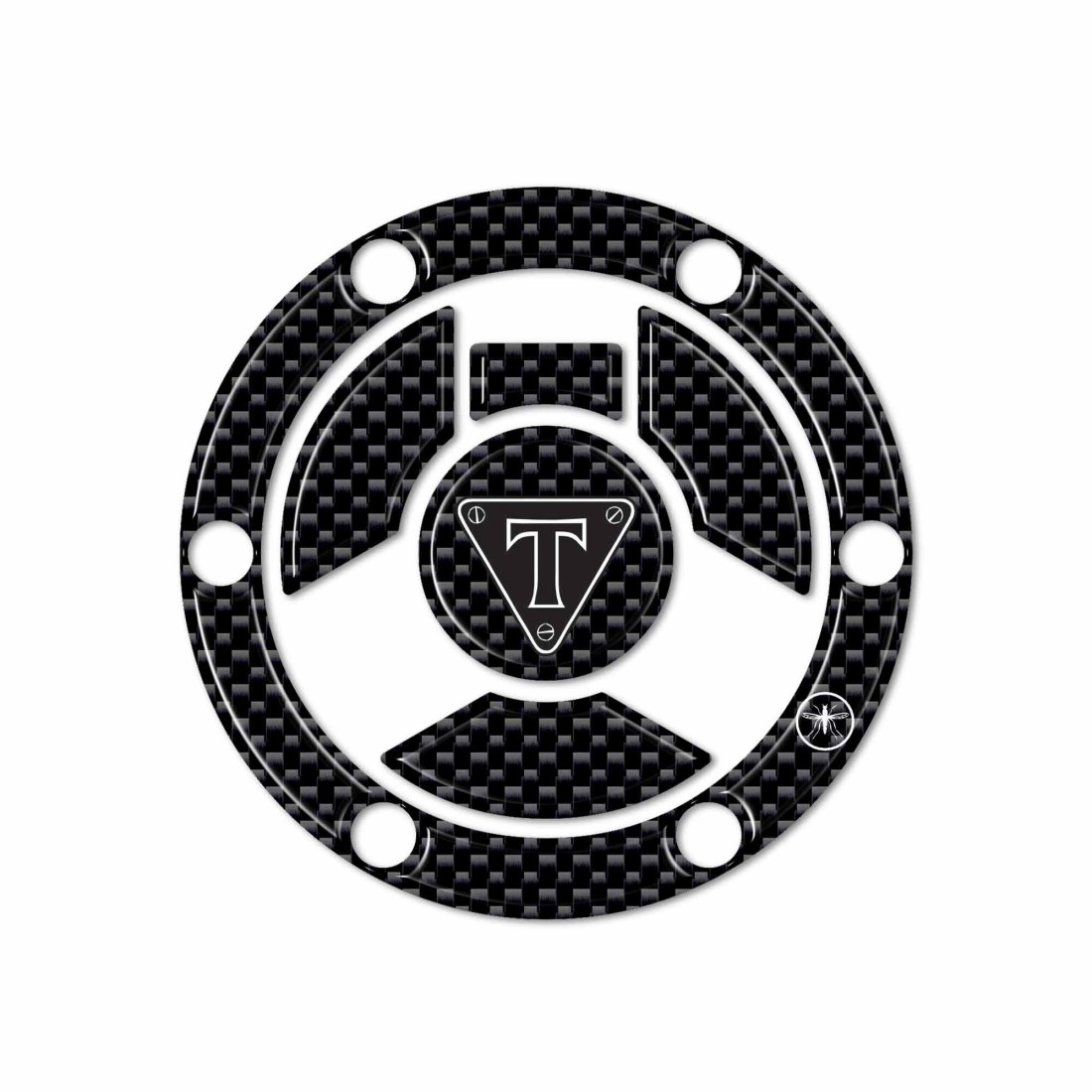 Protezione 3D per tappo serbatoio compatibile con moto Triumph dal 2016 al 2023. Adesivo resinato per proteggere e decorare il tappo serbatoio della tua moto. Protezione adesiva realizzata in resina con effetto simil carbonio e simbolo Triumph.